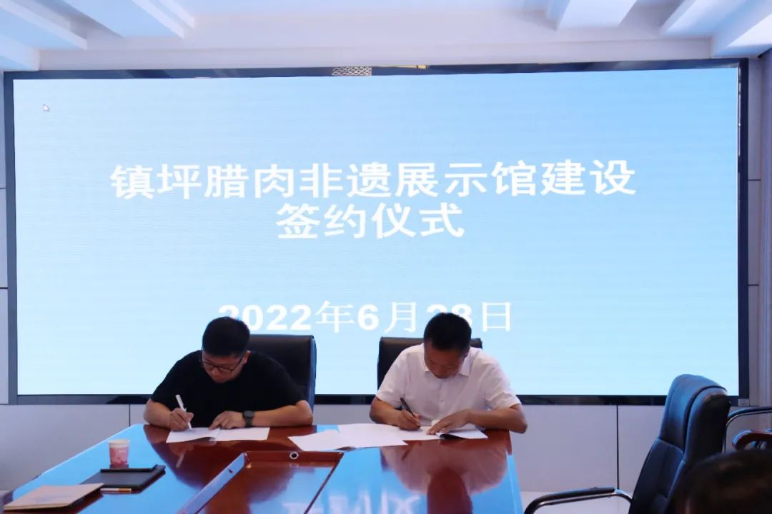 在与会人员的共同见证下,陕西至臻凯德展览装饰有限公司相关负责人与汉巴食品有限公司负责人共同签订了镇坪腊肉非遗展示馆建设签约协议,冀望合作双方以此为契机,擦亮腊肉文化,实现更高的经济价值,在实施乡村振兴战略中贡献力量。
